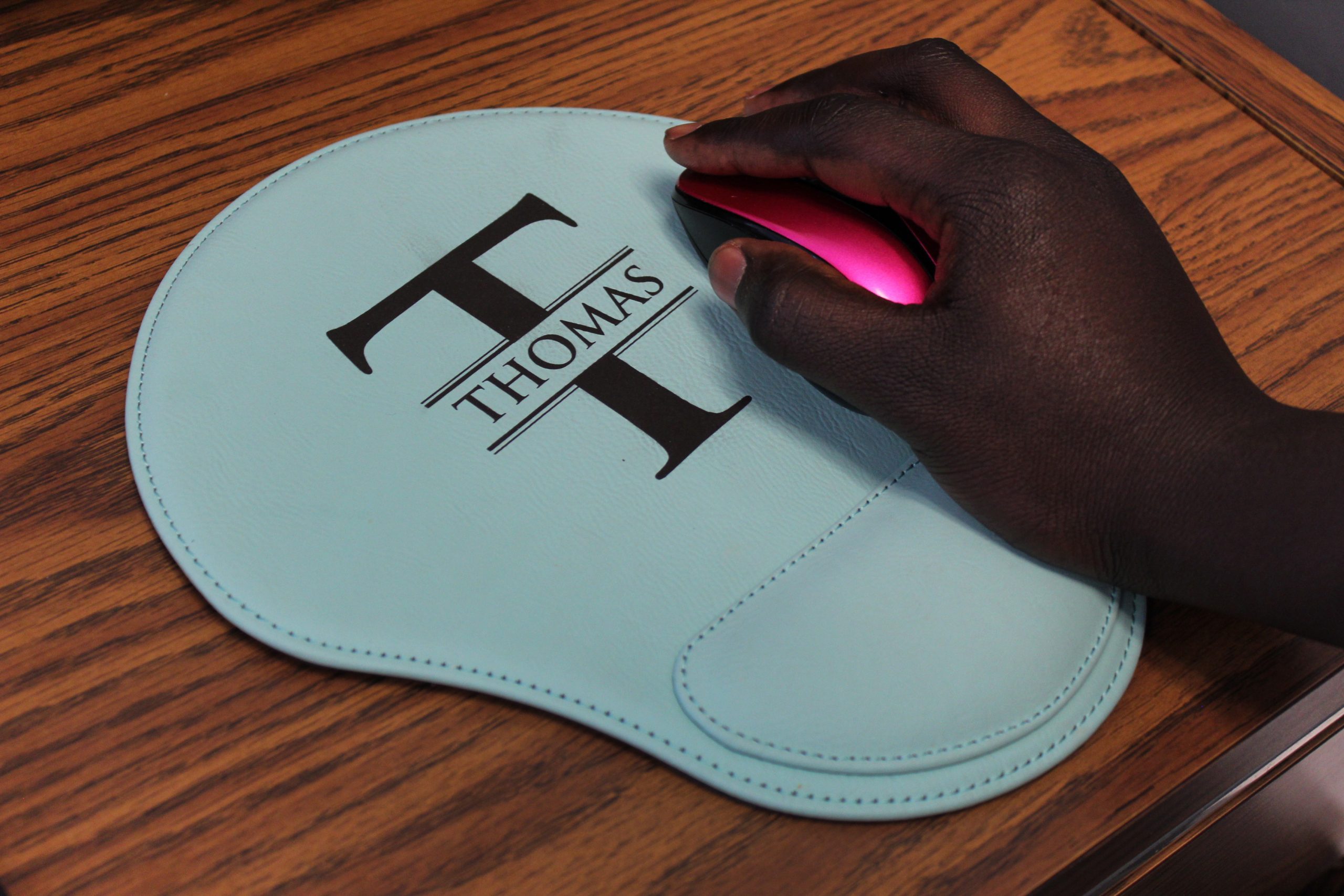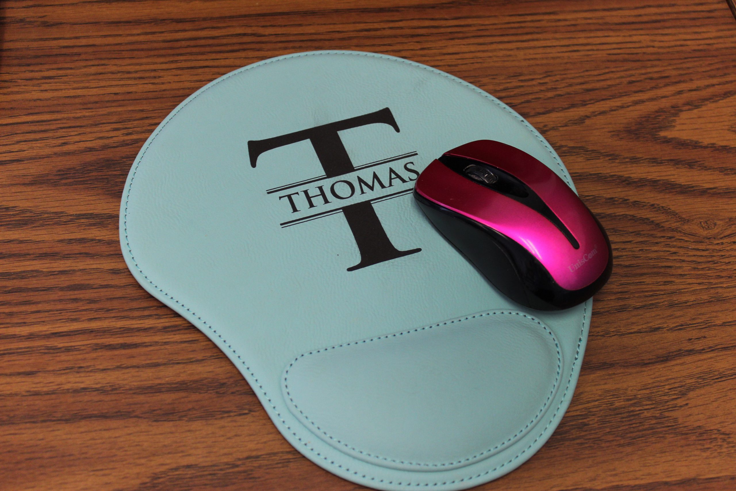 Custom Mouse Pad Comes in 4 Colors – Turquoise, Pink, Black, Brown. This a great gift for the office or home. Add a custom logo or name.